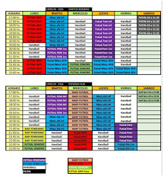 Por lo que, el cronograma de horarios de entrenamiento vigente, es el que se detalla a continuación: